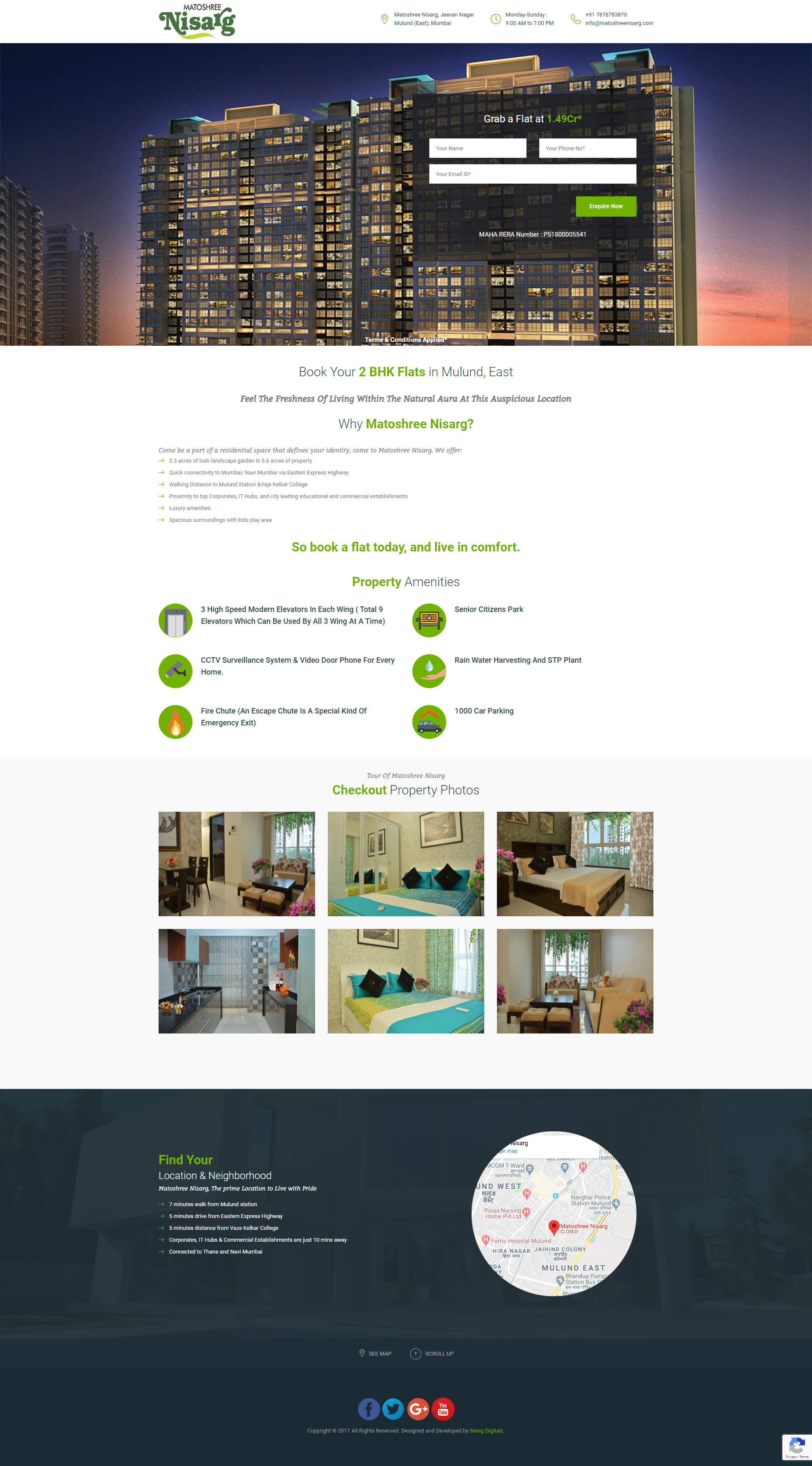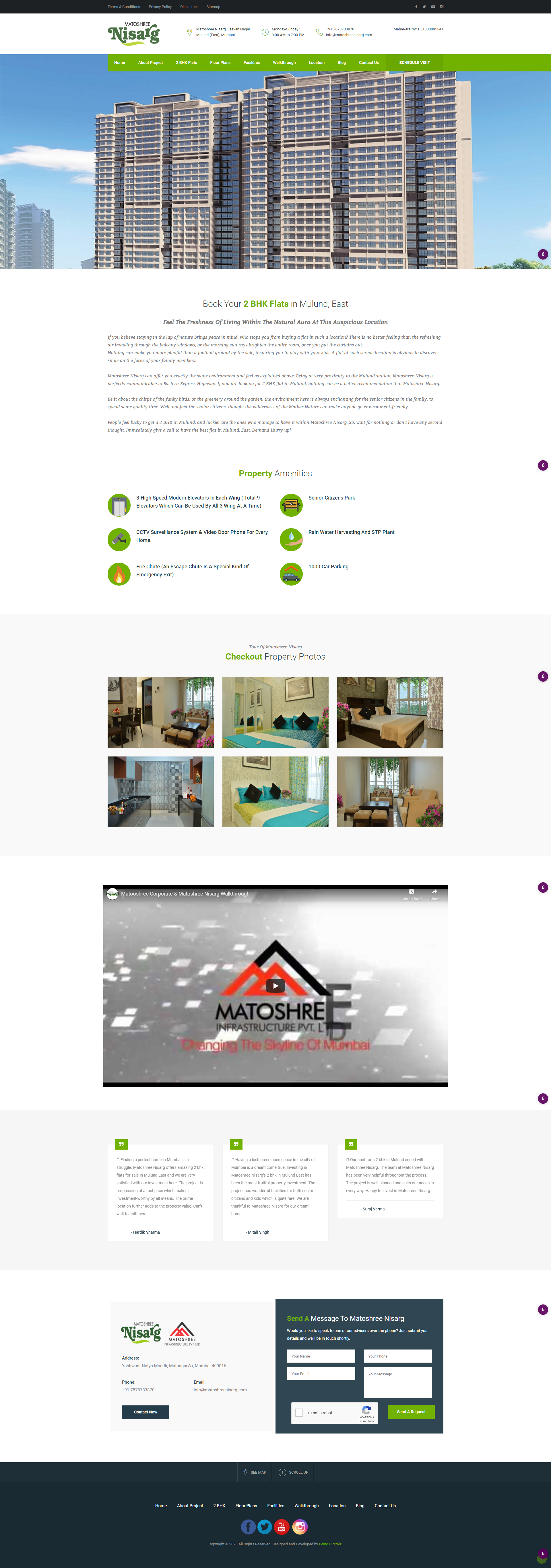 Matoshree Nisarg aims to offer homes which open out to spectacular views and enjoy luxurious amenities, crafted for comfortable lifestyle. with a comfortable and luxurious living experience. Come home to the peace and solitude of Mother Nature.